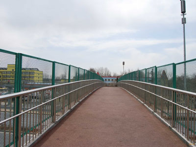 橋梁防拋網(wǎng)采用選用低碳鋼絲、鋁鎂合金絲編織焊接而成,使用噴塑進(jìn)行防腐處理。