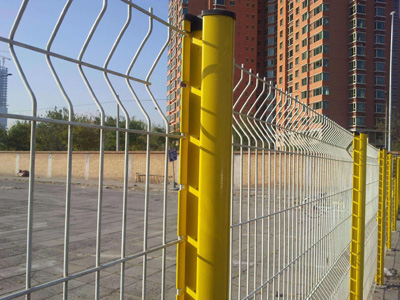 合適的折彎,造就了此種產品獨有的美觀效果,而且表面采用多種 顏色的浸塑處理,如黃色,綠色,紅色,立柱與網片不同顏色的搭配更是令人賞心悅目,同時此種產品多采用帶底盤立柱,安裝只需打好膨脹螺栓,非常的快捷。